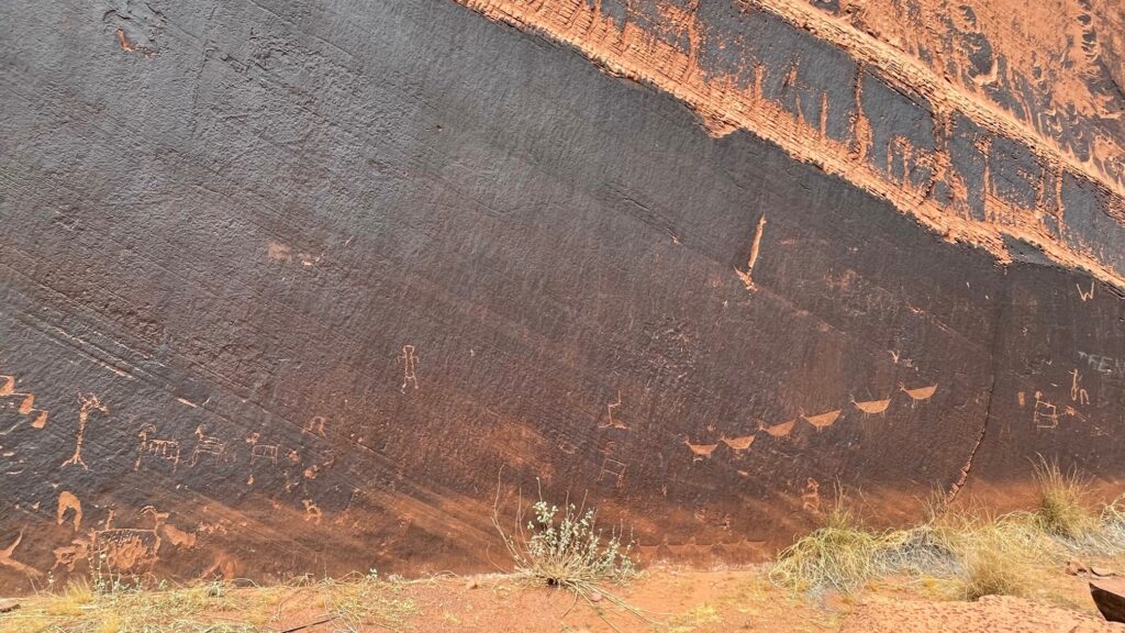 Auf halber Strecke den Colorado hinunter, gab es einen Halt. Auf den Felswänden haben wir uralte Schriften gesehen, die von Einheimischen vor hunderten Jahren an den Fels gemalt wurden.