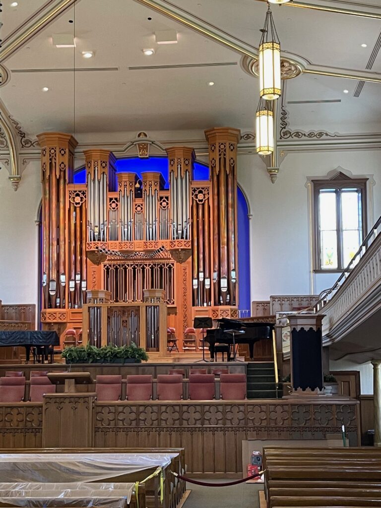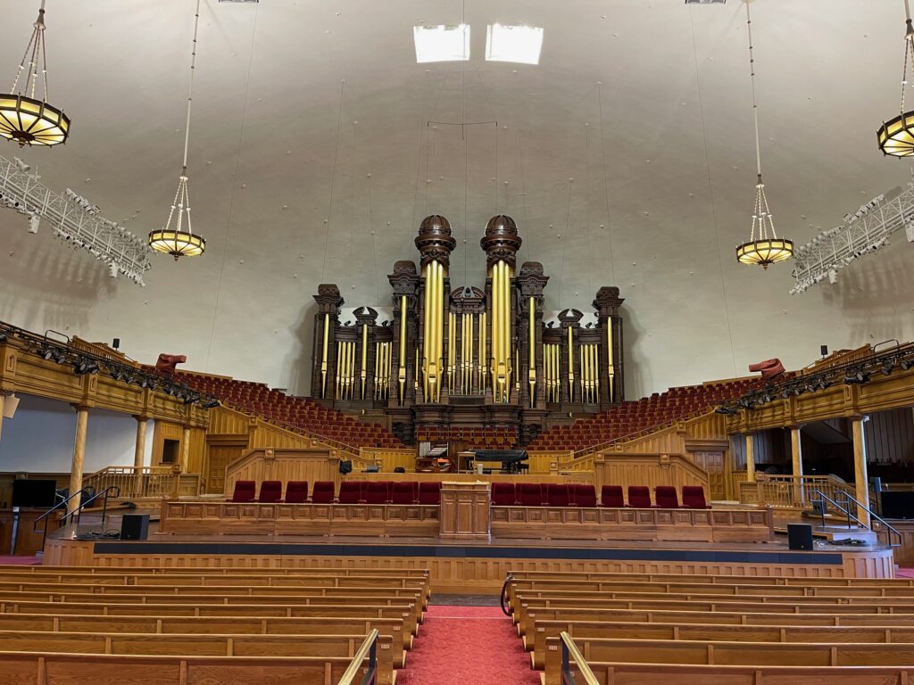 Wenn man in Salt Lake City ist, sollte man unbedingt den Mormonentempel und das Tabernakel anschauen. Leider war während unseres Aufenthaltes der Mormonentempel aus dem 19. Jahrhundert wegen Umbauarbeiten geschlossen. Wir konnten aber ins Tabernakel, den Kuppelsaal auf dem Temple Square. (links: das Tabernakel / Mitte: ein Blick ins Tabernakel / rechts: die Assembly Hall, ein wunderschönes Gebäude auf dem Areal)