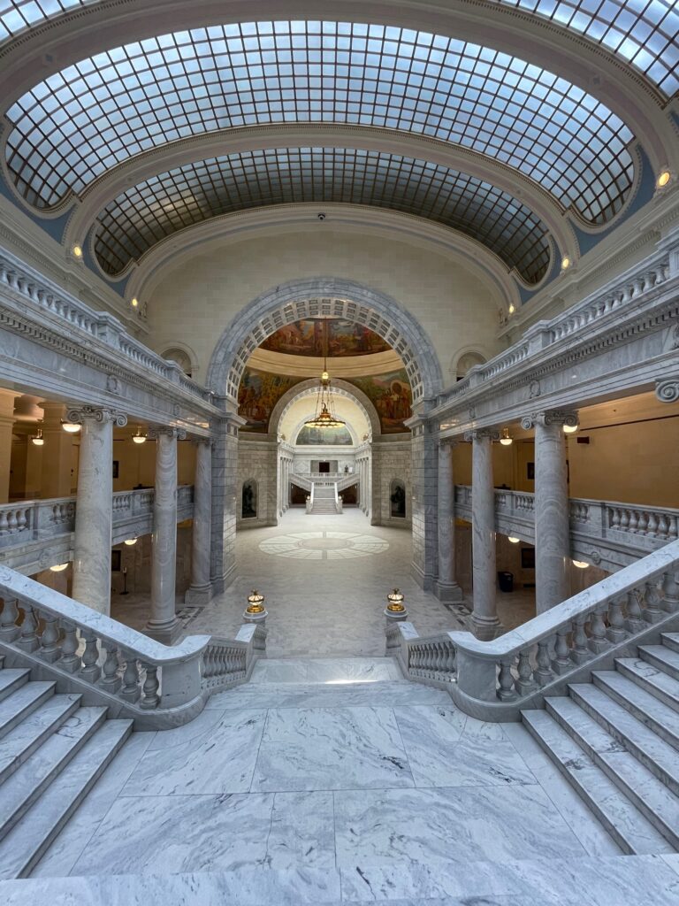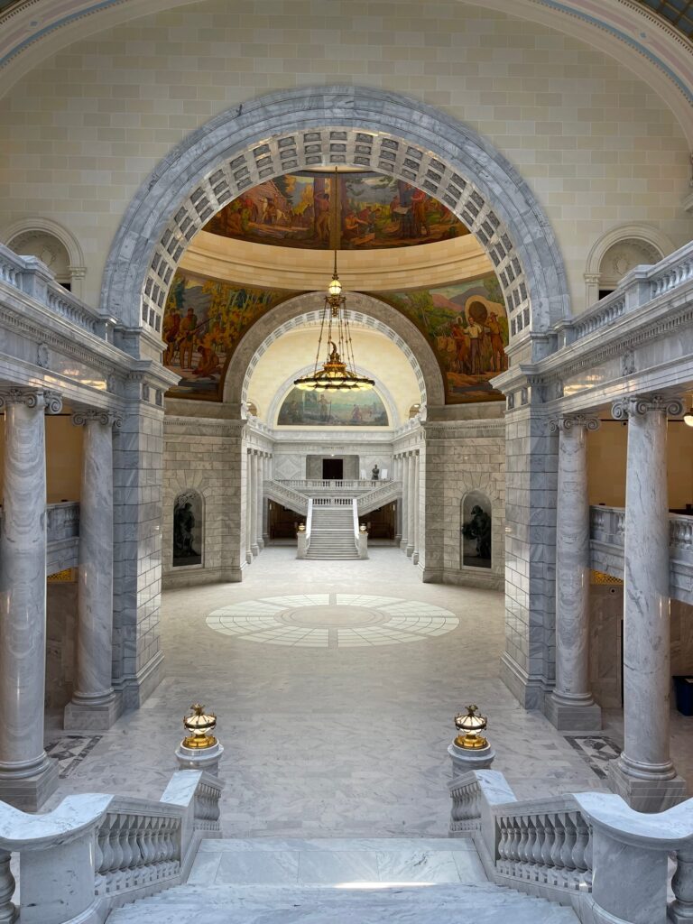 Während unserem Aufenthalt besuchten wir das State Capitol von Utah. Wie alle Capitols ist auch dieses ein eindrücklicher Bau. Das Gebäude besteht vollkommen aus Marmor. Sogar die Toilettenräume sind in Marmor gekleidet. Da muss man einfach zur Toilette, auch wenn man keine «Not» hat😉